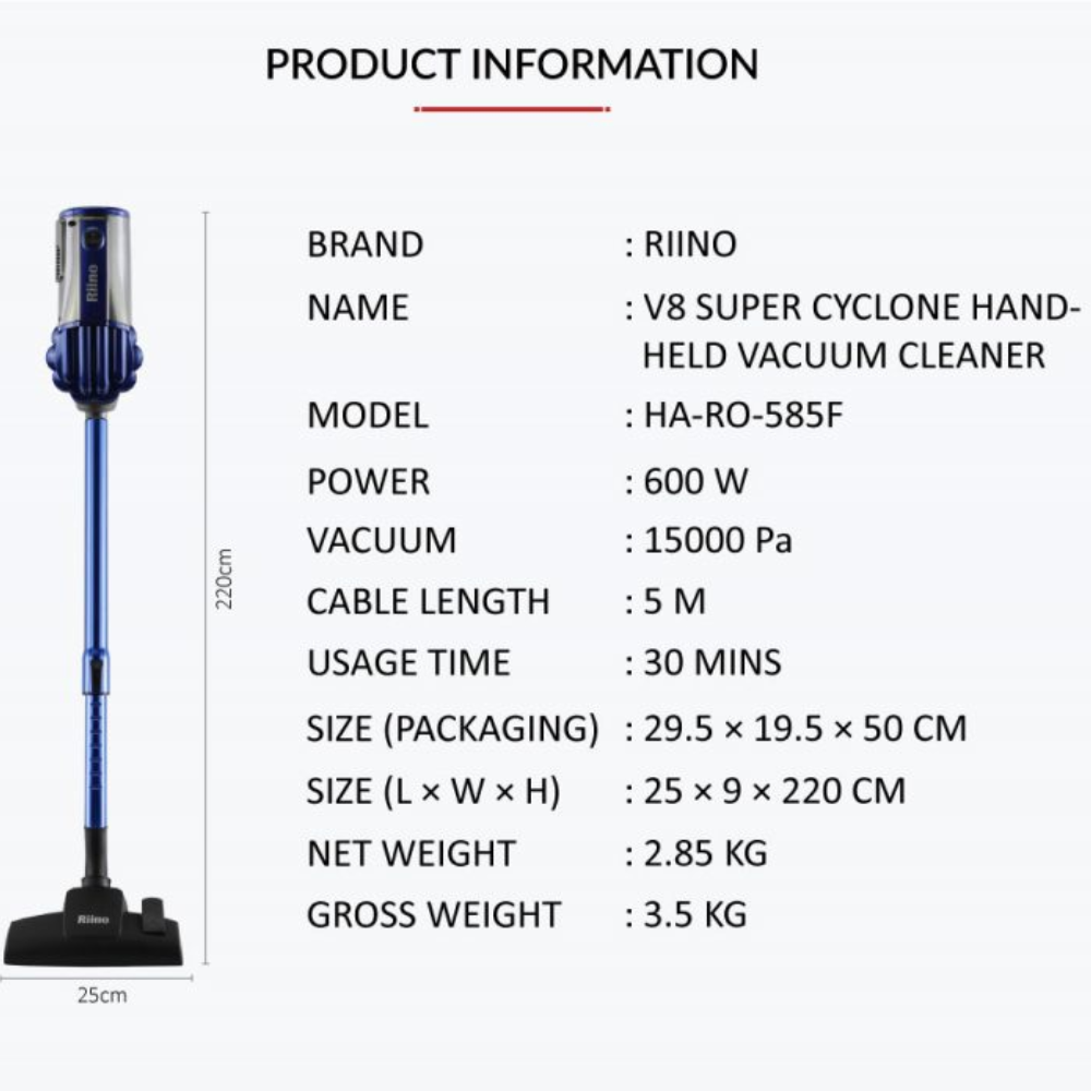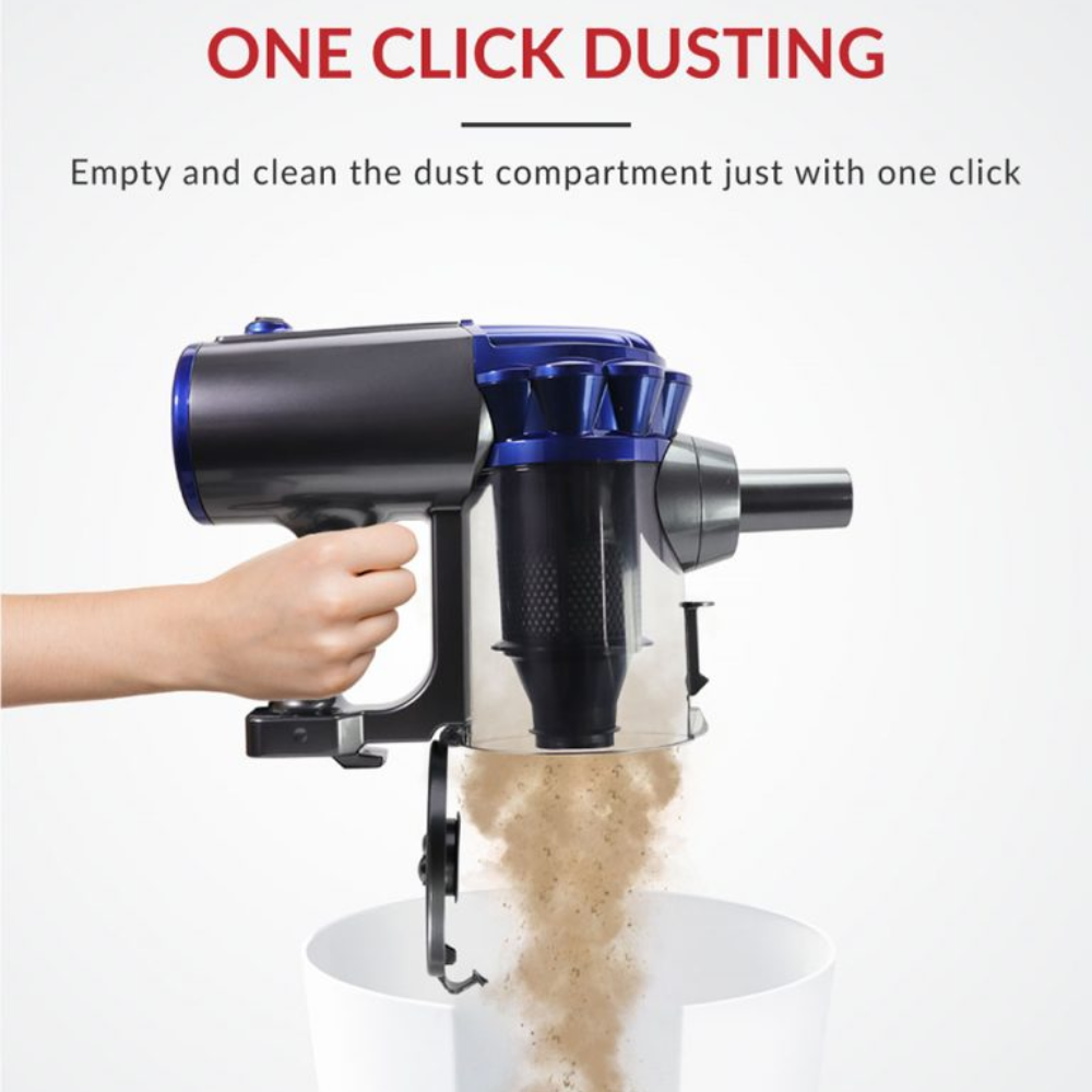 Super Cyclone Technology, lesser power consumption but with stronger suction. Easy to carry with ergonomic design. Easy to store with wall mounted design. Easy maintenance with filter separation and easy one click dusting option.